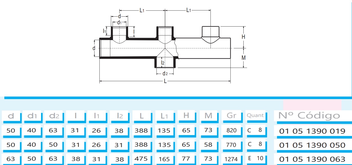 Colector con salida central PN16 ø63 mm (para pegar)