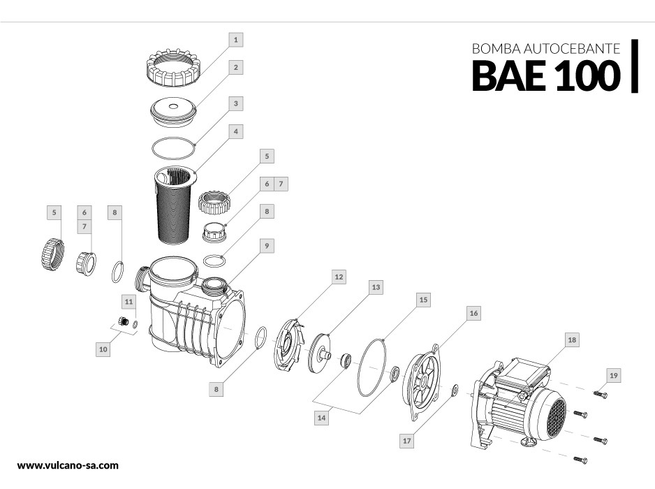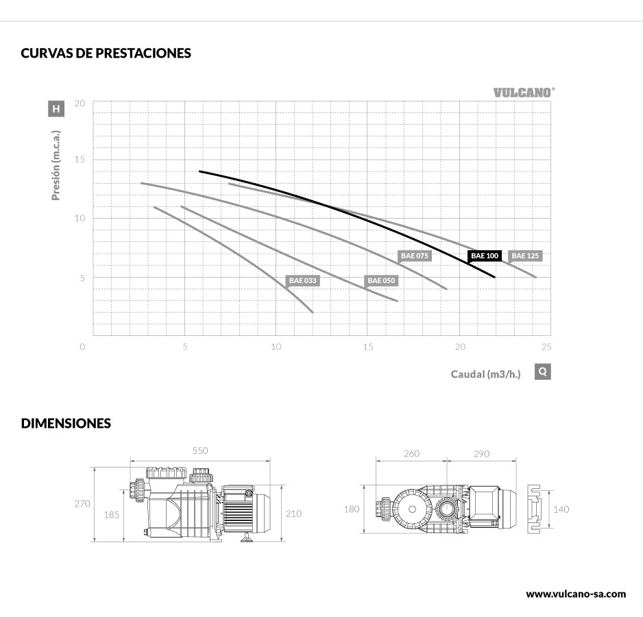 Bomba autocebante BAE 100 Vulcano de 1 HP de potencia y tensión monofásica de 220V-50HZ.