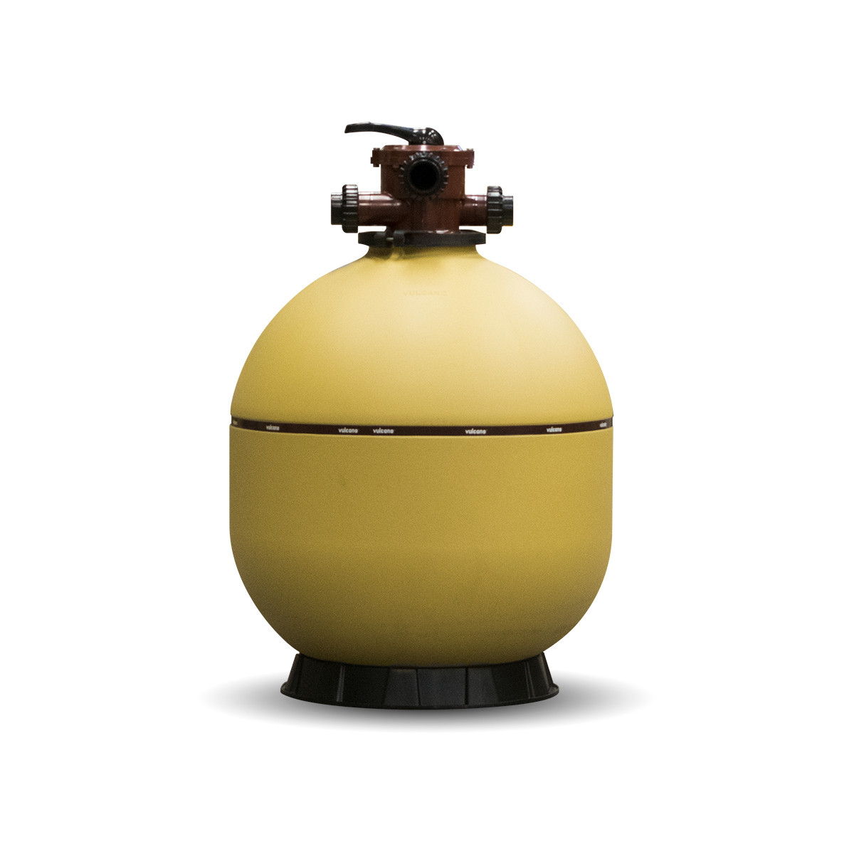 Filtro soplado VC-100 Vulcano de ø 680mm, para piletas de hasta 150m³, con multiválvula selectora de 6 vías con las funciones de filtrado, retrolavado, desagote, enjuague, centrifugado y cerrado.