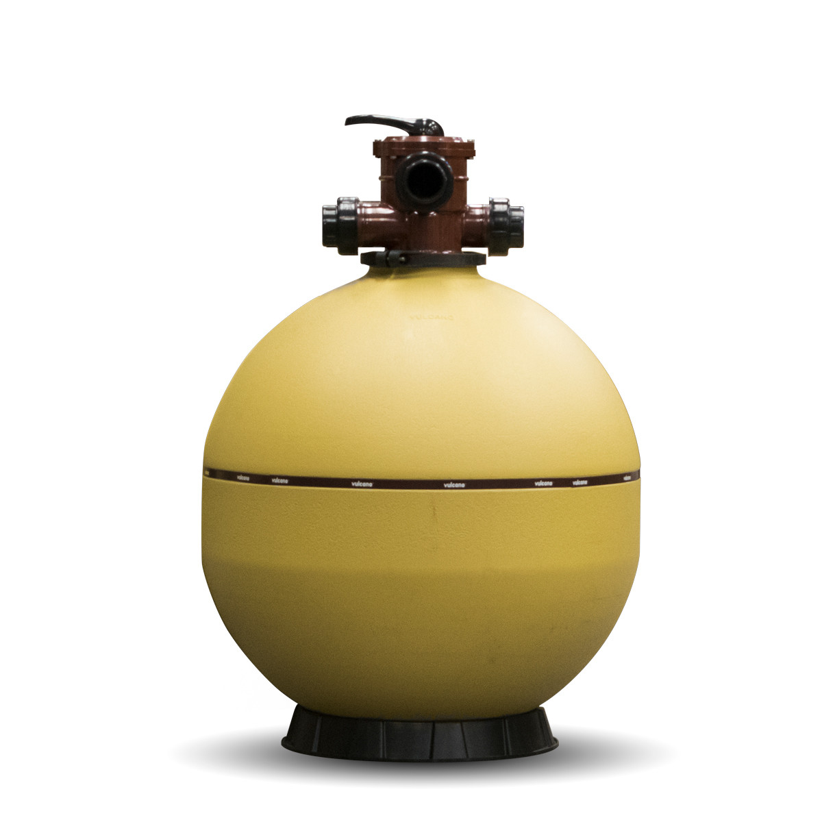 Filtro soplado VC-200 Vulcano de ø 780mm, para piletas de hasta 180m³, con multiválvula 2” de 6 vías y montaje superior; con las funciones de Filtrar, Retrolavar, Desagotar, Enjuagar, Recircular y Cerrar.