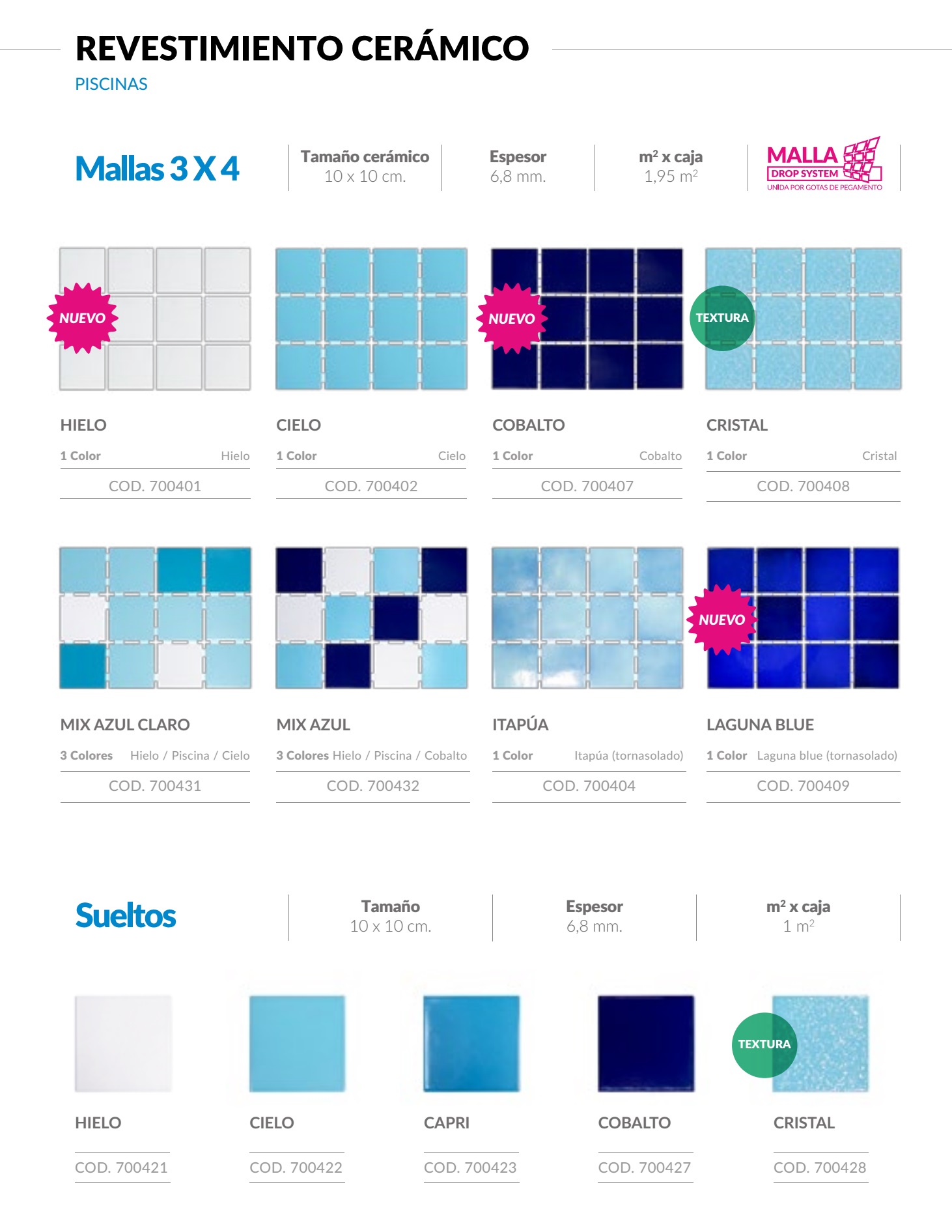 Malla cerámica Mix Azul para revestimiento de piscinas de 3 colores: Hielo, Piscina y Cobalto.